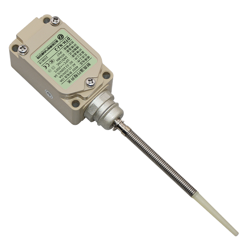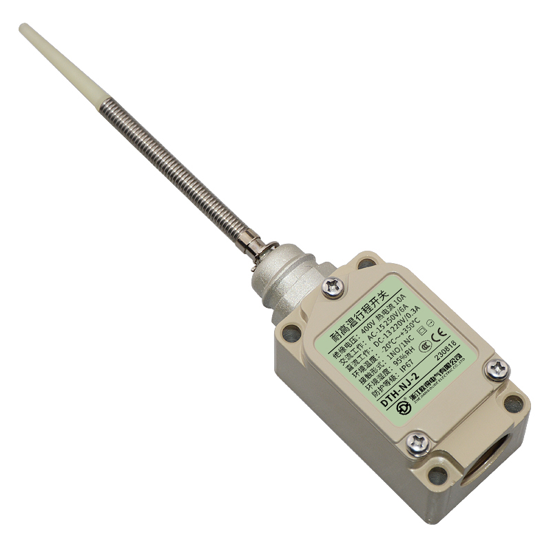 • DTH-NJ-2耐高溫行程開關,頂端樹脂棒·盤簧棒型,萬向式、通用直立型,長壽命2回路限位開關。適用于鋼鐵、焦化、電廠、紡織、醫(yī)療、化工、鋁材、塑料、玻璃、輪胎等高溫加工機械設備,作位移電路通斷信號檢測控制。