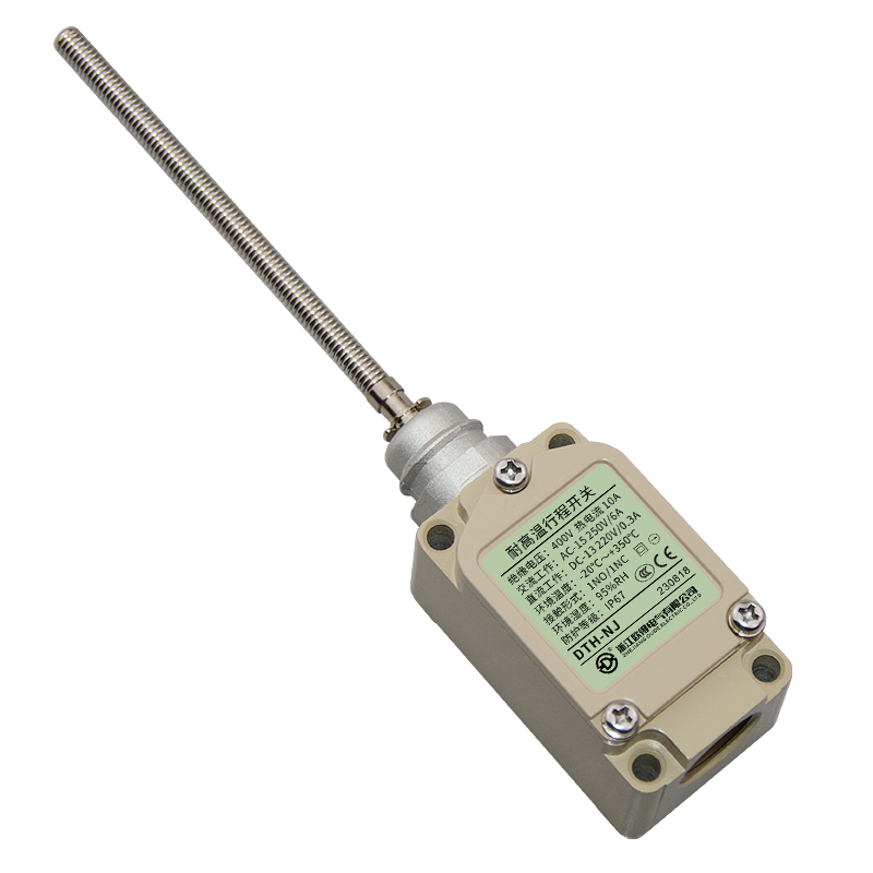 • DTH-NJ耐高溫行程開關,盤簧棒型,萬向式、通用直立型,長壽命2回路限位開關。適用于鋼鐵、焦化、電廠、紡織、醫(yī)療、化工、鋁材、塑料、玻璃、輪胎等高溫加工機械設備,作位移電路通斷信號檢測控制。