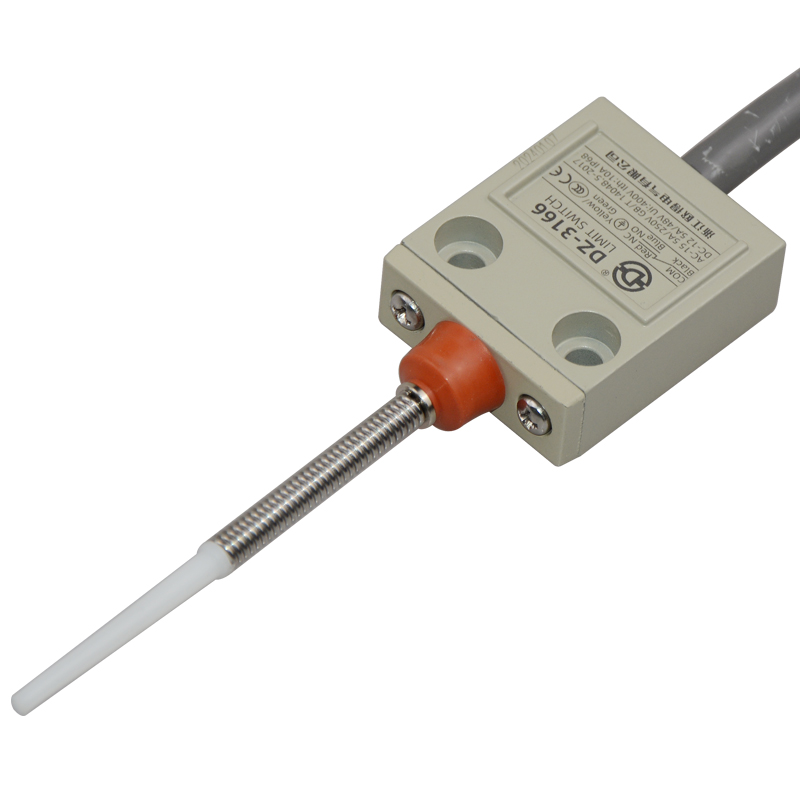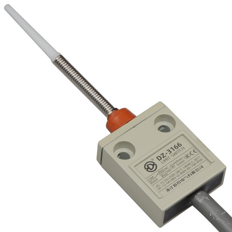 • DZ-3166防水行程開關(guān),樹脂棒盤簧型,萬向式,通用直立型,小型、薄形、IP68防護(hù)等級,樹脂與耐油軟線融合牢固,高度密封性兼具的緊湊型限位開關(guān)。適用于積水、潮濕環(huán)境下的機械設(shè)備,作位移電路通斷信號檢測控制。