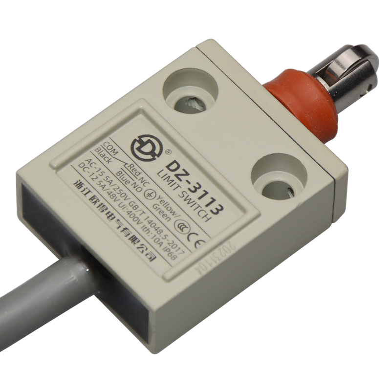 • DZ-3113防水行程開關(guān),密封式橫向滾輪柱塞型,通用直立型,小型、薄形、IP68防護(hù)等級,樹脂與耐油軟線融合牢固,高度密封性兼具的緊湊型限位開關(guān)。適用于積水、潮濕環(huán)境下的機(jī)械設(shè)備,作位移電路通斷信號檢測控制。