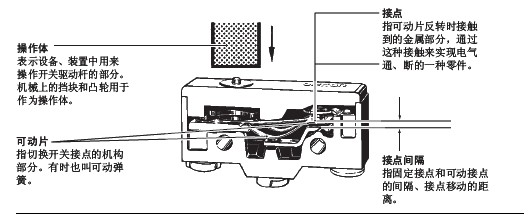 限位開(kāi)關(guān) 用語(yǔ)說(shuō)明■ 一般用語(yǔ)限位開(kāi)關(guān): 為保護(hù)小型開(kāi)關(guān)不受外力、水、油、塵 埃等的侵害而將其裝入金屬外殼或者塑料外殼中的開(kāi)關(guān)。(以下稱開(kāi)關(guān)) 額定值一般指作為開(kāi)關(guān)特性和性能的保證標(biāo)準(zhǔn)的量, 如額定電流, 額定電壓等, 以特定的條件為前提。 有接點(diǎn)指利用接點(diǎn)的機(jī)械開(kāi)合來(lái)實(shí)現(xiàn)開(kāi)關(guān)的功能。 接觸形式根據(jù)各種用途構(gòu)成接點(diǎn)的電氣輸入輸出電路的方式。 樹(shù)脂固定(塑封端子)用導(dǎo)線對(duì)端子部分完好配線, 通過(guò)充填樹(shù)脂使該部分固定, 消除暴露在外的帶電部分, 提高密封性的一種方法。 ![]() ■ 與結(jié)構(gòu)、構(gòu)造相關(guān)的用語(yǔ) ![]() ■ 關(guān)于壽命的用語(yǔ) 機(jī)械壽命 將過(guò)行程(OT)設(shè)為規(guī)格值,在未通電狀態(tài)下的開(kāi)關(guān)壽命。 電氣壽命將過(guò)行程(OT) 設(shè)為規(guī)格值,在額定負(fù)載(阻性負(fù)載)下的開(kāi)關(guān)壽命。 FP (自由位置)沒(méi)有施加外力時(shí)驅(qū)動(dòng)桿的位置。 OP (動(dòng)作位置)向驅(qū)動(dòng)桿施加外力,使可動(dòng)接點(diǎn)剛從自由位置的狀態(tài)開(kāi)始反轉(zhuǎn)時(shí)的位置。 TTP (總行程位置)驅(qū)動(dòng)桿到達(dá)驅(qū)動(dòng)桿停止檔時(shí)的位置。 RP (返回位置)減少對(duì)驅(qū)動(dòng)桿的外力,使可動(dòng)接點(diǎn)剛從動(dòng)作位置反轉(zhuǎn)到自由位置狀態(tài)時(shí)驅(qū)動(dòng)桿的位置。 OF (動(dòng)作力)為了從自由位置移動(dòng)到工作位置所必須給驅(qū)動(dòng)桿施加的力。 RF (回復(fù)力)為了從總行程位置移動(dòng)到回復(fù)位置,必須對(duì)驅(qū)動(dòng)桿施加的力。 PT (預(yù)行程)驅(qū)動(dòng)桿從自由位置到動(dòng)作位置的移動(dòng)距離或移動(dòng)角度。 OT (過(guò)行程)驅(qū)動(dòng)桿從動(dòng)作位置到總行程位置的移動(dòng)距離或移動(dòng)角度。 MD (應(yīng)差行程)驅(qū)動(dòng)桿從動(dòng)作位置到返回位置的移動(dòng)距離或移動(dòng)角度。 TT (總行程)驅(qū)動(dòng)桿從自由位置到總行程位置的移動(dòng)距離或移動(dòng)角度。 對(duì)目錄中使用的上述規(guī)格用語(yǔ)說(shuō)明如下。 EN60947-5-1「電氣機(jī)械控制電路設(shè)備」的EN規(guī)格。和IEC60947-5-1的內(nèi)容相同。