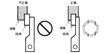 注. 關(guān)于擋塊的形狀,應(yīng)設(shè)計(jì)成驅(qū)動(dòng)桿反轉(zhuǎn)時(shí)不能碰到另一方的滾珠。