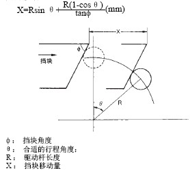 · 對(duì)應(yīng)于合適的行程, 擋塊移動(dòng)量的表示式如下。