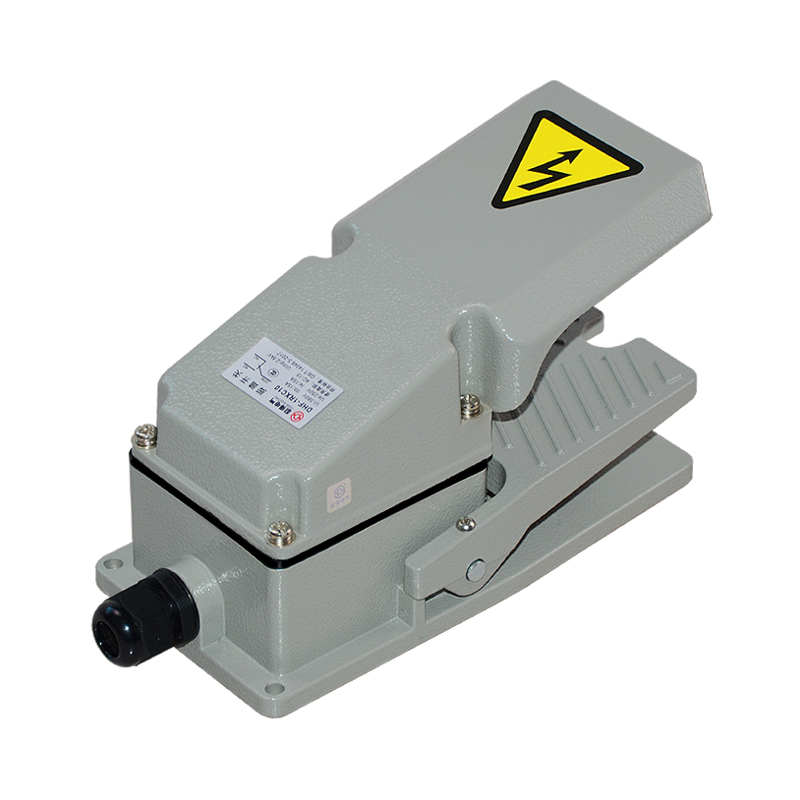 • DHF-1RXC10腳踏開關,頂端帶防護罩,鑄鋁材質(zhì),加厚踩踏板,堅固耐用。適用于數(shù)控鍛壓機械設備電路信號通斷控制。額定絕緣電壓380伏,發(fā)熱電流15安培,工作電壓電流交流250伏、15安培,防護等級IP60。